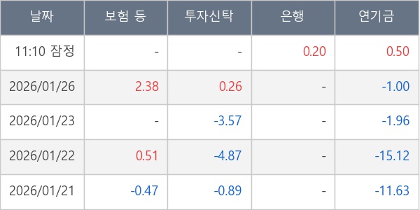 [표] 주요 기관별 순매매량 (단위 만주)