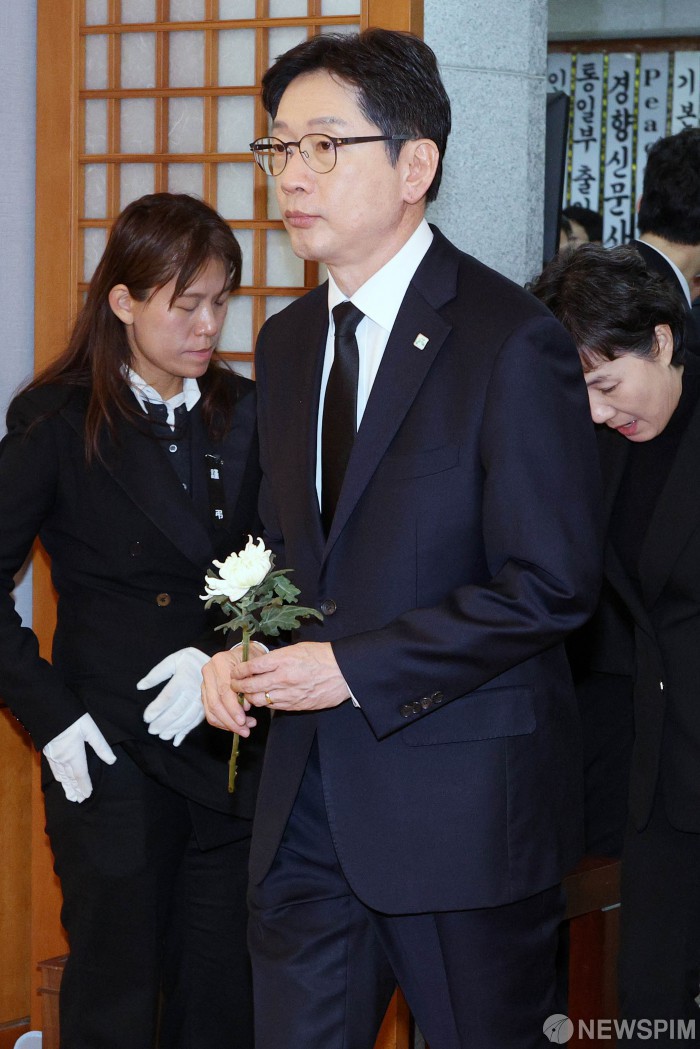[서울=뉴스핌] 사진공동취재단 = 김경수 지방시대위원회 위원장이 27일 서울 종로구 서울대학교병원 장례식장에 마련된 고(故) 이해찬 전 국무총리의 빈소를 조문하고 있다. 2026.01.27 photo@newspim.com