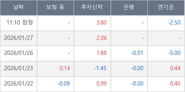 [표] 주요 기관별 순매매량 (단위 만주)