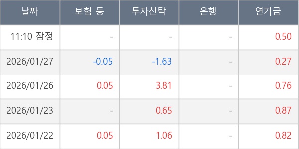 ※ 사모펀드 등 일부 기관의 순매매량은 표시되지 않음