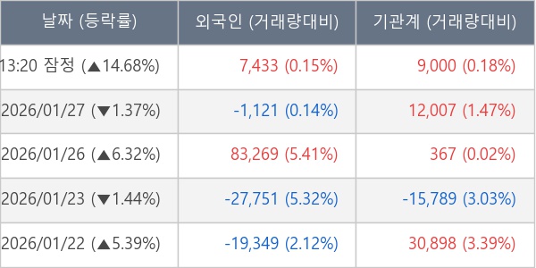 [장중수급포착] 에코프로머티, 외국인/기관 동시 순매수… 주가 +14.68%
