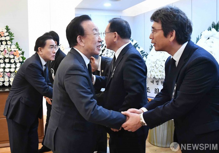 [서울=뉴스핌] 사진공동취재단 = 김관용 전 경북지사가 28일 오전 서울 종로구 서울대학교병원 장례식장에 마련된 故 이해찬 전 국무총리의 빈소에서 조문을 하고 있다. 2026.01.28 photo@newspim.com
