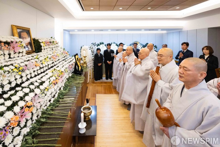 [서울=뉴스핌] 사진공동취재단 = 대한불교 조계종 총무원장 진우스님이 28일 오후 서울 종로구 서울대학교병원 장례식장에 마련된 故 이해찬 전 국무총리의 빈소에서 조문을 하고 있다. 2026.01.28 photo@newspim.com