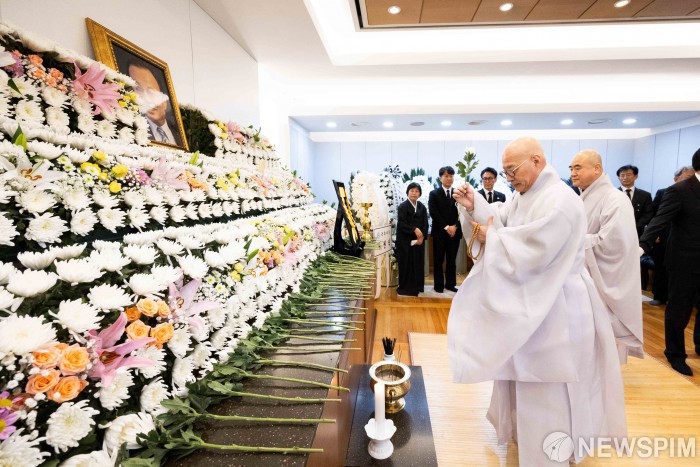 [서울=뉴스핌] 사진공동취재단 = 대한불교 조계종 총무원장 진우스님이 28일 오후 서울 종로구 서울대학교병원 장례식장에 마련된 故 이해찬 전 국무총리의 빈소에서 조문을 하고 있다. 2026.01.28 photo@newspim.com