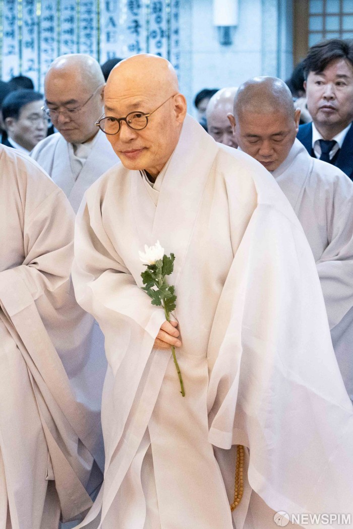 [서울=뉴스핌] 사진공동취재단 = 대한불교 조계종 총무원장 진우스님이 28일 오후 서울 종로구 서울대학교병원 장례식장에 마련된 故 이해찬 전 국무총리의 빈소에서 조문을 하고 있다. 2026.01.28 photo@newspim.com