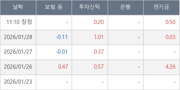 ※ 사모펀드 등 일부 기관의 순매매량은 표시되지 않음