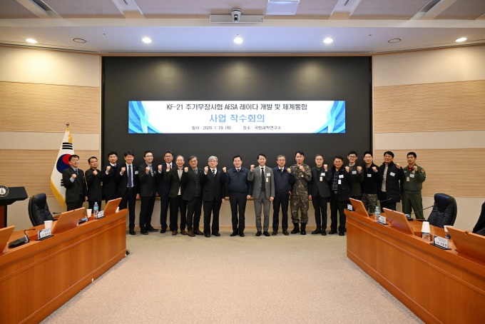 국방과학연구소(소장 이건완, 이하 ADD)는 29일 대전 본소에서 방위사업청, 국방부, 합참, 공군, 한화시스템, 한국항공우주산업(KAI) 등 관계기관이 참석한 가운데 'KF-21 추가무장시험 AESA 레이다 개발 및 체계통합' 사업 착수회의를 열고 본격적인 시험평가 일정에 돌입했다고 밝혔다.