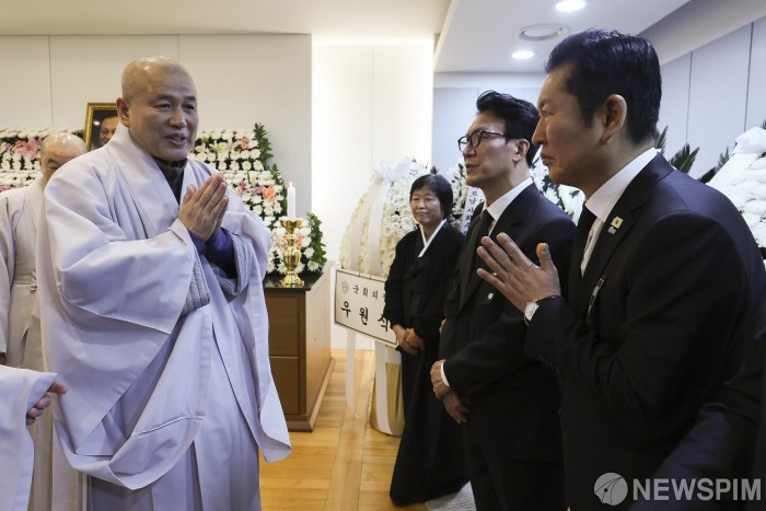 [서울=뉴스핌] 사진공동취재단 = 천태종 감사원장인 용구스님이 29일 오전 서울 종로구 서울대학교병원 장례식장에 마련된 고(故) 이해찬 전 국무총리의 빈소에서 조문하고 있다. 2026.01.29 photo@newspim.com