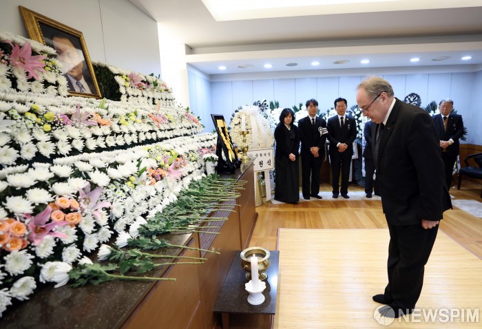 [서울=뉴스핌] 사진공동취재단 = 제프 로빈슨 주한호주대사가 29일 오전 서울 종로구 서울대학교병원 장례식장에 마련된 고(故) 이해찬 전 국무총리의 빈소에서 조문하고 있다. 2026.01.29 photo@newspim.com