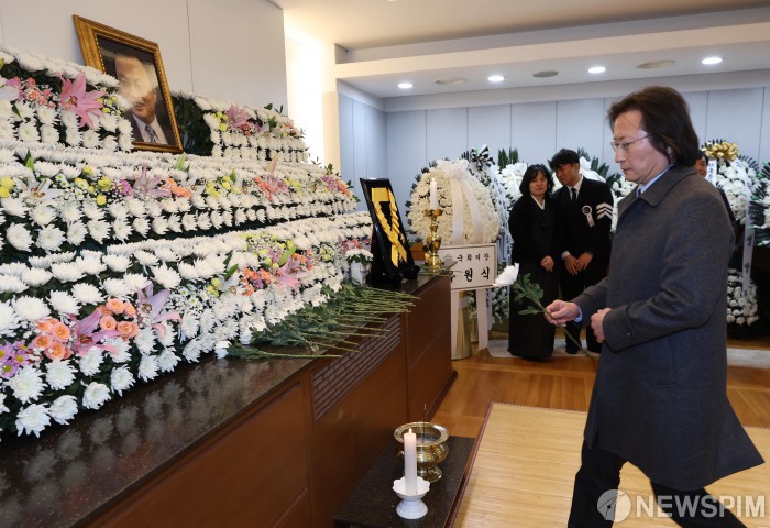 [서울=뉴스핌] 사진공동취재단 = 주병기 공정거래위원장이 29일 오전 서울 종로구 서울대학교병원 장례식장에 마련된 고(故) 이해찬 전 국무총리의 빈소에서 조문하고 있다. 2026.01.29 photo@newspim.com