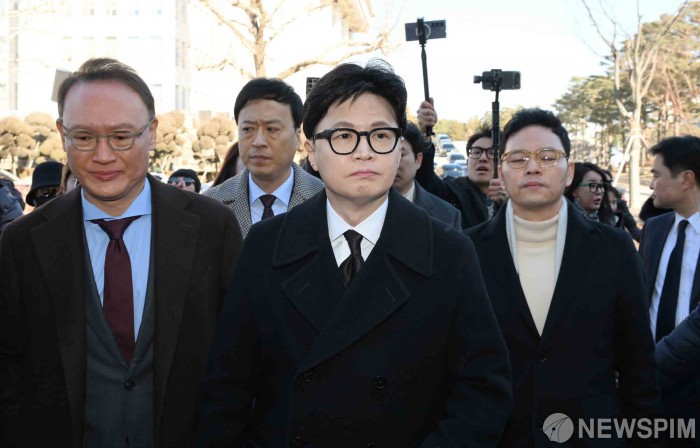 [서울=뉴스핌] 윤창빈 기자 = 국민의힘으로부터 제명된 한동훈 전 국민의힘 대표가 29일 서울 여의도 국회에서 제명과 관련한 기자회견을 위해 들어서고 있다. 2026.01.29 pangbin@newspim.com