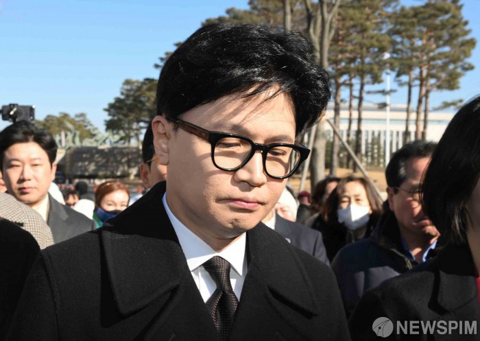 [서울=뉴스핌] 윤창빈 기자 = 국민의힘으로부터 제명된 한동훈 전 국민의힘 대표가 29일 서울 여의도 국회에서 제명과 관련한 기자회견을 위해 들어서고 있다. 2026.01.29 pangbin@newspim.com