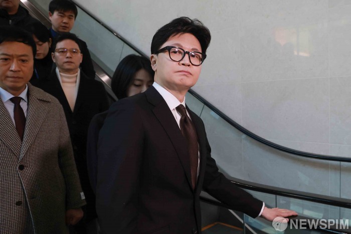 [서울=뉴스핌] 윤창빈 기자 = 국민의힘으로부터 제명된 한동훈 전 국민의힘 대표가 29일 서울 여의도 국회에서 제명과 관련한 기자회견을 마치고 소통관을 나서고 있다. 2026.01.29 pangbin@newspim.com