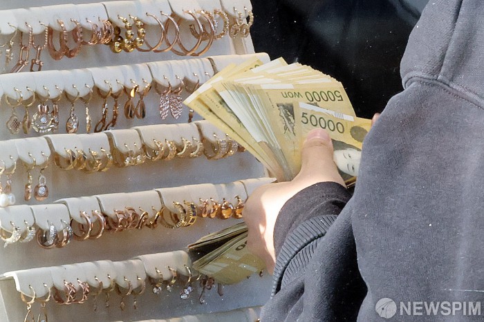 [서울=뉴스핌] 이형석 기자 = 국제 금 가격이 5500달러를 돌파한 29일 오후 서울 종로3가 일대 귀금속 판매단지에서 현금을 이용한 금 거래가 진행되고 있다. 2026.01.29 leehs@newspim.com