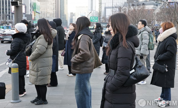 [서울=뉴스핌] 양윤모 기자 = 30일 오전 계속되는 한파주의보속 서울의 아침 체감온도가 영하 12도를 나타내고 있는 가운데 종로구 세종대로 사거리에서 시민들이 출근을 위해 신호를 기다리고 있다. 2026.01.30 yym58@newspim.com