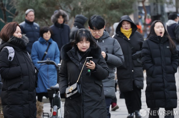 [서울=뉴스핌] 양윤모 기자 = 30일 오전 계속되는 한파주의보속 서울의 아침 체감온도가 영하 12도를 나타내고 있는 가운데 종로구 광화문역에서 시민들이 출근을 위해 이동하고 있다. 2026.01.30 yym58@newspim.com
