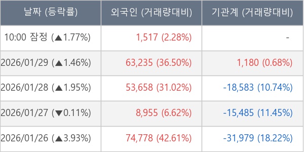 [표] 외국인ㆍ기관 순매매량 (단위 주)