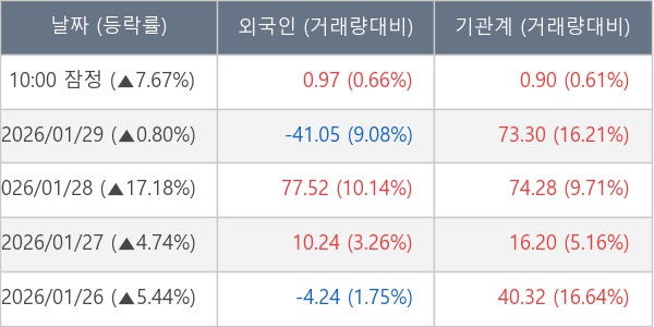 [서울=뉴스핌] 로보뉴스 = 30일 10시 15분 현재 HPSP(403870)는 전일 대비 7.67% (현재가 47,750원) 상승했고, 기관이 최근 6일 연속 순매수(누적 218.83만 주, 잠정) 행진을 하고 있다.