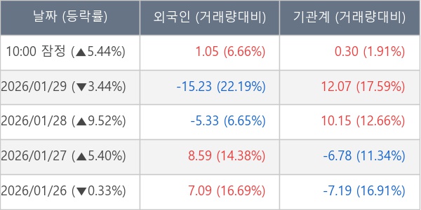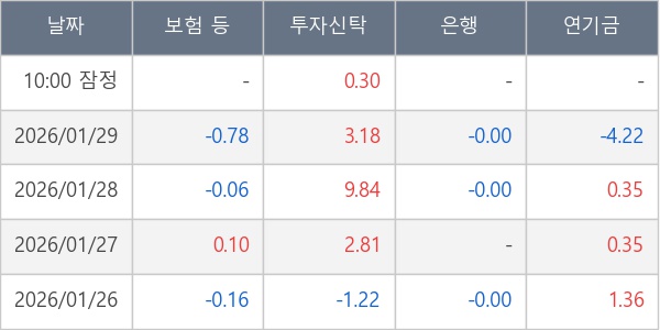[표] 주요 기관별 순매매량 (단위 만주)