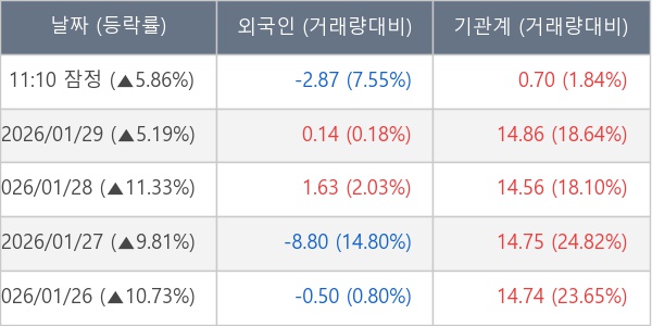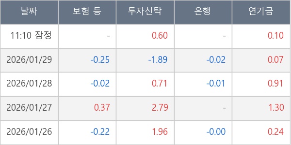 [표] 주요 기관별 순매매량 (단위 만주)