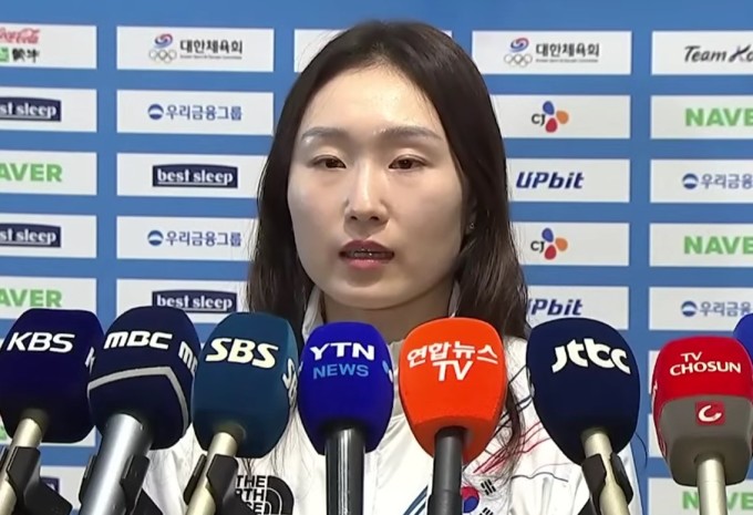 [서울=뉴스핌] 박상욱 기자 = 동계올림픽에 참가하는 한국 여자 선수단 주장 쇼트트랙 최민정이 30일 출국하기 전 인터뷰에 응하고 있다. [사진=연합뉴스TV 중계화면 캡처] 2026.01.30 psoq1337@newspim.com