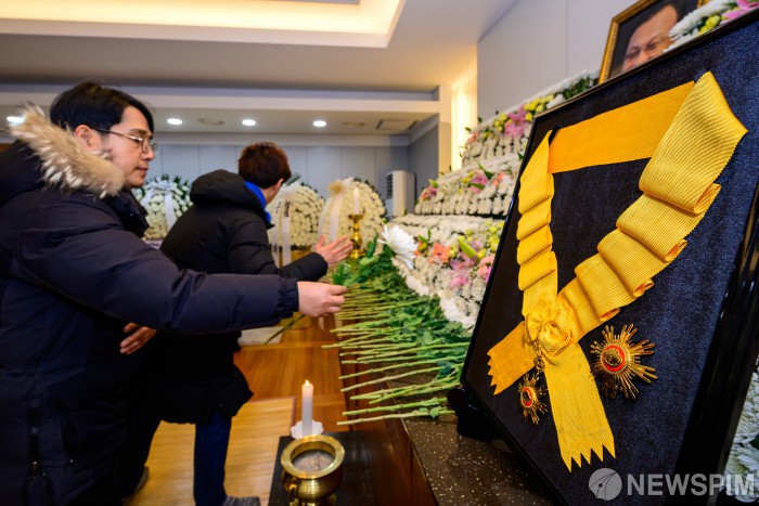 [서울=뉴스핌] 사진공동취재단 = 30일 오후 서울 종로구 서울대학교병원 장례식장에 마련된 고(故) 이해찬 전 국무총리의 빈소를 찾은 시민들이 조문을 하고 있다. 2026.01.30 photo@newspim.com