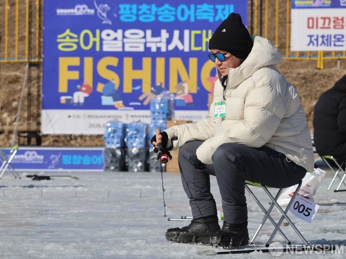 [서울=뉴스핌] 30일 평창 오대천 평창송어축제장에서 열린 평창송어축제 20주년을 기념하는 '평창송어얼음낚시대회'의 한 참가자가 강추위에도 불구하고 낚시에 열중하고 있다. [사진=평창관광문화재단] 2026.01.30 photo@newspim.com