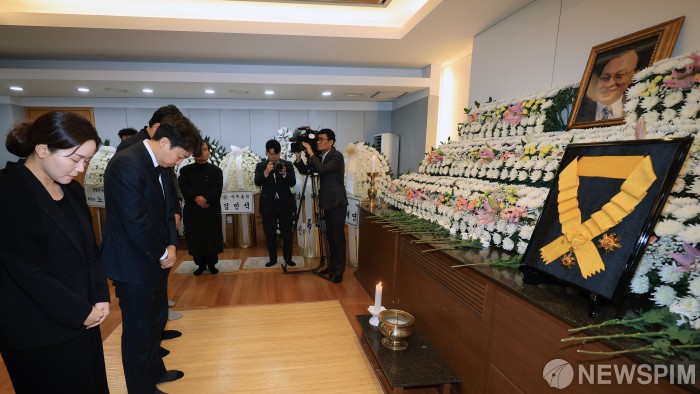 [서울=뉴스핌] 사진공동취재단 = 이준석 개혁신당 대표가 30일 오후 서울 종로구 서울대학교병원 장례식장에 마련된 고(故) 이해찬 전 국무총리의 빈소에 조문을 하고 있다. 2026.01.30 photo@newspim.com