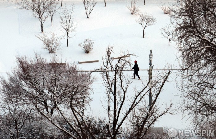 눈 내린 경복궁 찾은 관광객