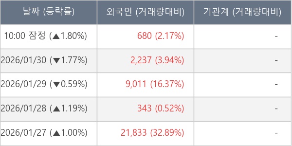 [표] 외국인ㆍ기관 순매매량 (단위 주)