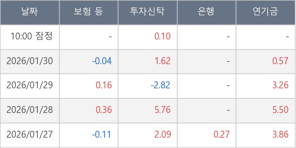 [표] 주요 기관별 순매매량 (단위 만주)