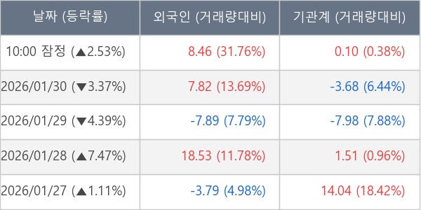 ※ 사모펀드 등 일부 기관의 순매매량은 표시되지 않음