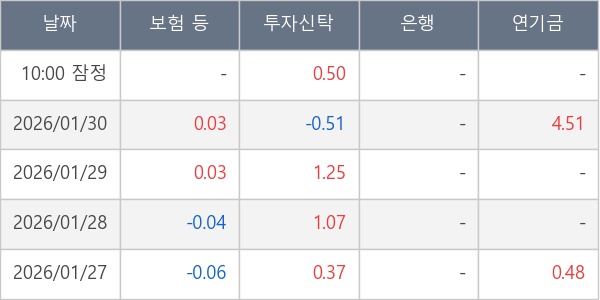 [표] 주요 기관별 순매매량 (단위 만주)