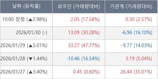 [표] 주요 기관별 순매매량 (단위 만주)