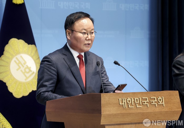 [서울=뉴스핌] 정일구 기자 = 김재원 국민의힘 최고위원이 2일 오전 서울 여의도 국회 소통관에서 경상북도지사 출마 선언 기자회견을 하고 있다. 2026.02.02 mironj19@newspim.com