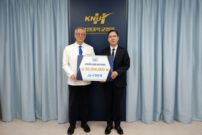 신학기 Sh수협은행 은행장은 "강원대병원은 지역 주민들의 생명과 건강을 지키는 공공의료의 중추적 역할을 수행하는 의료기관"이라며 "이번 발전기금을 통해 지역민의 의료 복지 향상에 도움이 되길 진심으로 바란다"고 말했다.