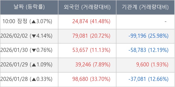 [표] 외국인ㆍ기관 순매매량 (단위 주)