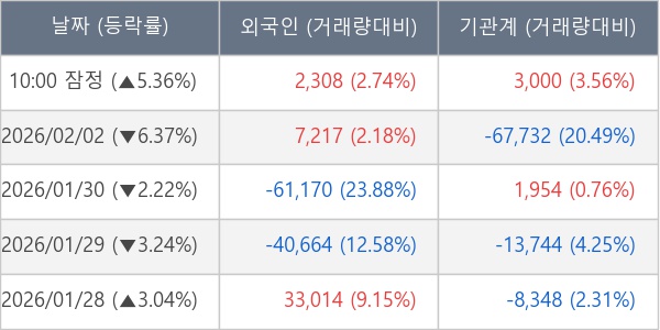 [표] 주요 기관별 순매매량 (단위 주)