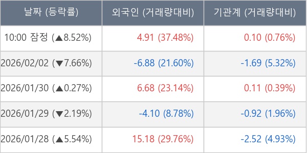 ※ 사모펀드 등 일부 기관의 순매매량은 표시되지 않음