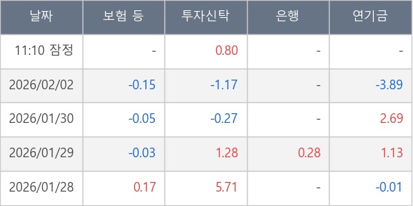 [표] 주요 기관별 순매매량 (단위 만주)