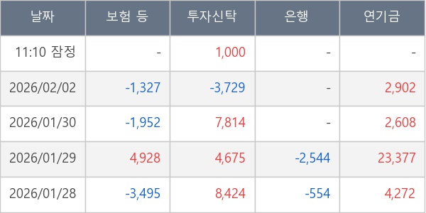 ※ 사모펀드 등 일부 기관의 순매매량은 표시되지 않음