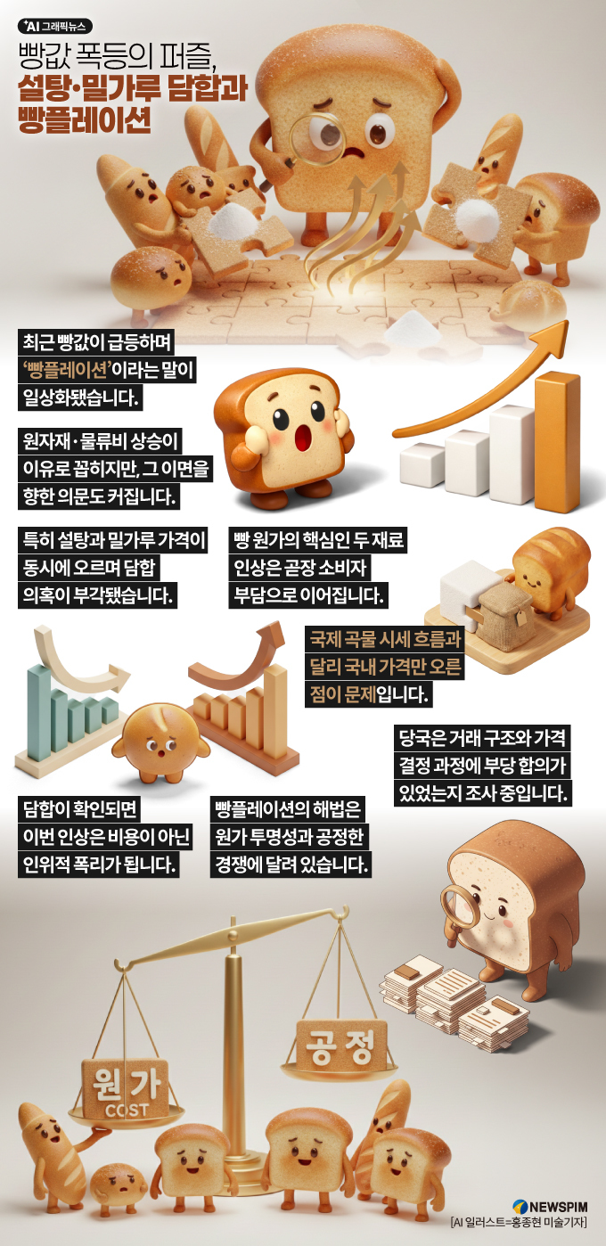 [AI그래픽뉴스] 빵값 폭등의 퍼즐, 설탕·밀가루 담합과 빵플레이션