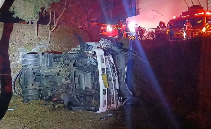 경찰과 소방 당국은 차량이 경사로 쪽에서 균형을 잃고 쓰러진 것으로 보고 구체적인 사고 경위를 조사 중이다.