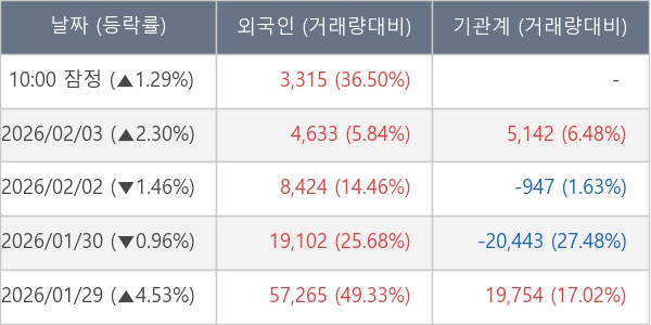 [표] 외국인ㆍ기관 순매매량 (단위 주)