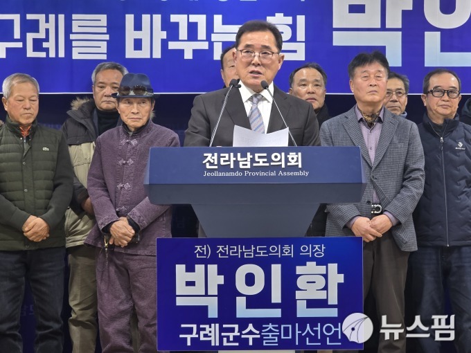[무안·구례=뉴스핌] 조은정 기자 = 전남도의회 의장을 지낸 박인환 전 의장이 4일 "구례를 문화와 산업이 결합된 통합특별시의 중심도시로 만들겠다"며 구례군수 선거 출마를 공식 선언했다.