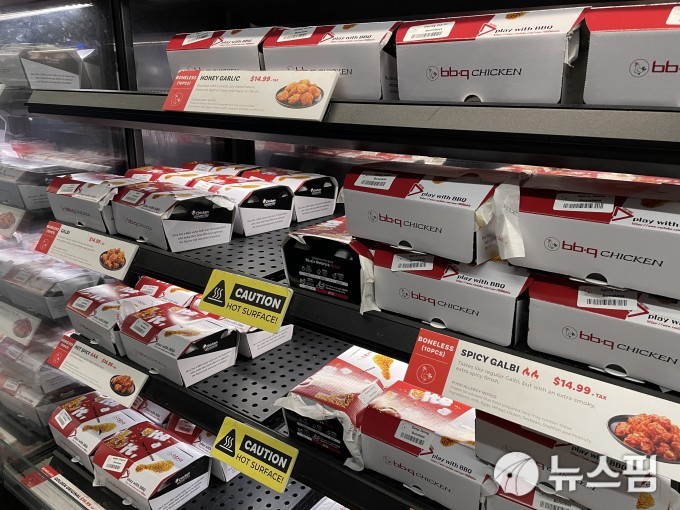 [뉴욕=뉴스핌] 이정아 기자 = 지난달 26일(현지시간) 미국 뉴욕 한인타운 비비큐 치킨(BBQ Chicken) 매장에서 판매하고 있는 한국식 치킨. 2024.11.02 plum@newspim.com