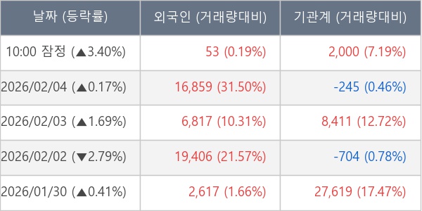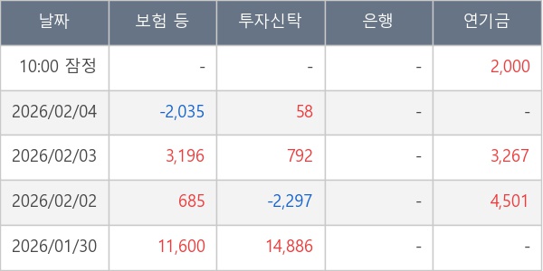 [표] 주요 기관별 순매매량 (단위 주)