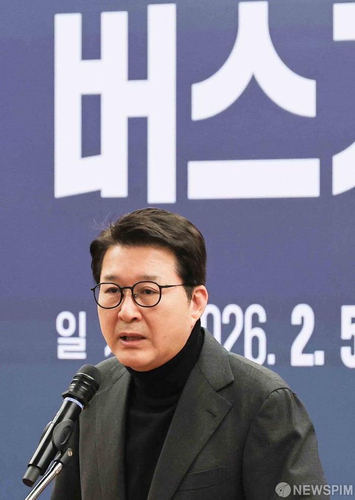 [서울=뉴스핌] 윤창빈 기자 = 토론회를 공동 주최한 신동욱 국민의힘 의원이 5일 서울 여의도 국회 의원회관에서 열린 시내버스 필수공익사업 지정 토론회에서 개회사를 하고 있다. 2026.02.05 pangbin@newspim.com