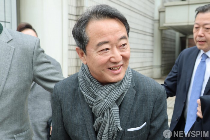 [서울=뉴스핌] 류기찬 기자 = 골관절염 세포치료제 인보사 성분을 조작한 혐의를 받는 이웅열 코오롱 명예회장이 5일 오후 서울 서초구 서울고등법원에서 열린 항소심 선고 공판에서 무죄를 선고 받은 뒤 법정을 나서고 있다. 2026.02.05 ryuchan0925@newspim.com