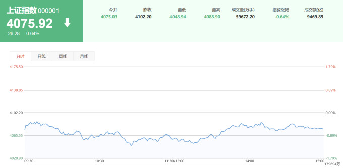 이날 상하이종합지수는 0.64% 하락한 4075.92, 선전성분지수는 1.44% 하락한 13952.71, 촹예반지수는 1.55% 하락한 3260.28로 각각 장을 마감했다.